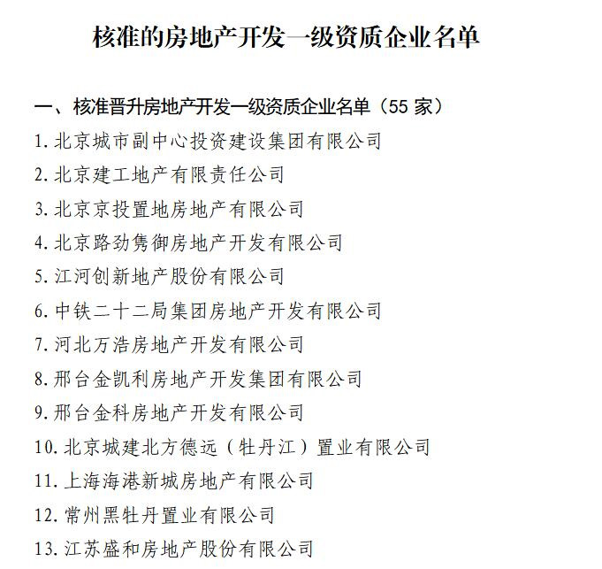 房地產開發資質分為兩個級別,國家一級資質是最高級別,對企業的整體規模、開發業績、施工質量、人員配備、從業年限等均有要求,獲批難度較大。本次全省僅3家企業核準晉升房地產開發一級資質。